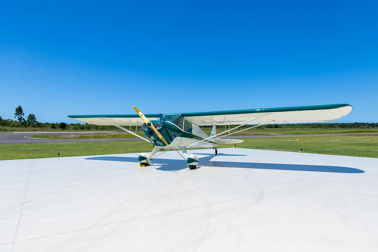 A aeronave do acervo tem uma história que pode ser reconstruída apenas à partir da sua aquisição pelo piloto, entusiasta de aviação e primoroso restaurador de aeronaves Lúcio Sallowicz, num trabalho feito à partir do que restava do Taylorcraft BF-65 original, o exemplar de C/n 3379, produzido em 1941, e com a matrícula brasileira PP-TPH, constando como seu primeiro proprietário Luiz Siqueira Matheus, de Cafelândia (SP). Entretanto, o trabalho de reconstrução foi tão intenso e abrangente que não havia como registrar a aeronave pelo fabricante original, a Taylorcraft, sendo então necessário que fosse totalmente recertificado, daí o seu registro na ANAC (Agência Nacional de Aviação Civil) ser apenas à partir dessa reconstrução, e por este mesmo motivo, o aparelho constar no RAB (Registro Aeronáutico Brasileiro) como sendo de fabricação do próprio Lúcio Sallowicz, com número de fabricação “BPF 001”, e do modelo “BPF”.